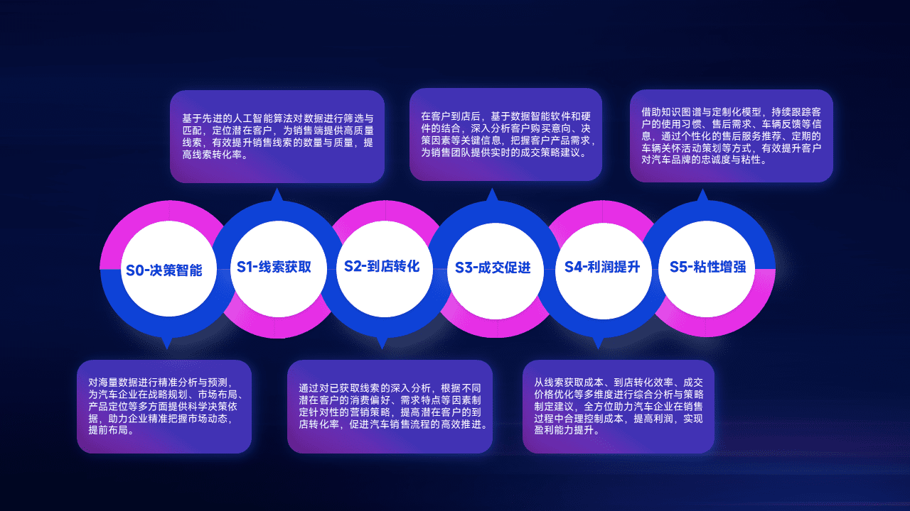 通过拓宽潜在客户来源、、、优化线索分配并提高到店转化率,,以增强销售效率。。。。同时,,,,利用线索数据不断优化分析模型,,有效提升转化率,,,扩大营销影响力。。。